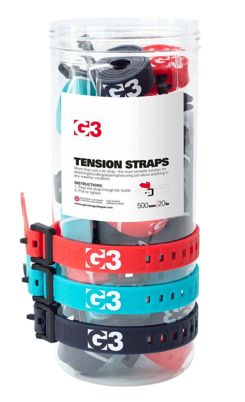 Супер здрави и гъвкави дори при ниски температури, каишките G3 Tension Straps са супер функционални не само за захващане на ските една за друга. Винаги е добра идея да имате един чифт в раницата си за всеки случай. По-късите размери са подходящи за ски и друга екипировка, а по-дългите - за захващане на обемни принадлежности към раницата, велосипеда или багажника на колата ви.